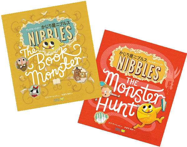 「かじり屋ニブルス」は、本を食べちゃうモンスター。 本をかじってもぐり込み、お話の世界に飛び込んで、ストーリーを変えたり、いたずらをしたり、大騒ぎです。