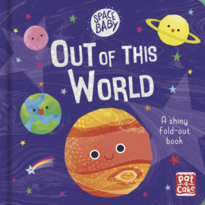 0-2歳のお子さま向けのキラキラ光り大きく広がる折りたたみ絵本で、お出かけなどの持ち運びにもぴったりなサイズです。『すてきな うちゅうへ』原書。