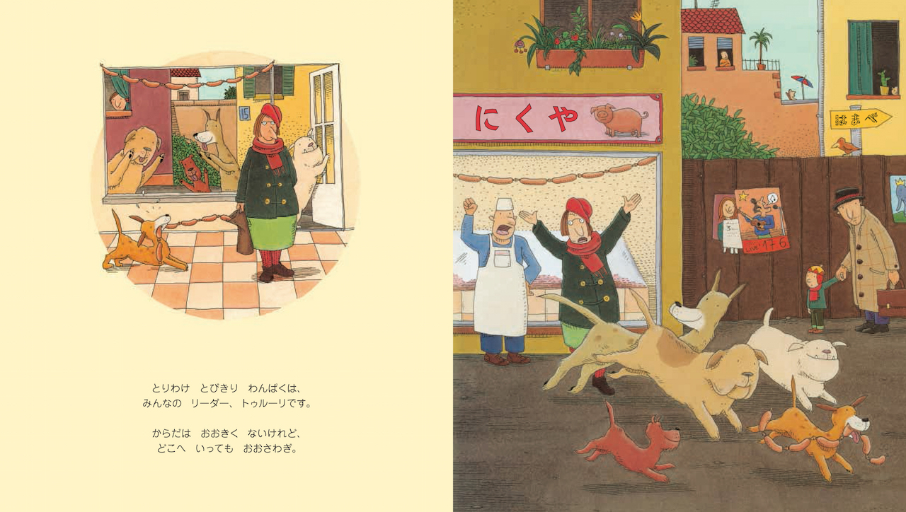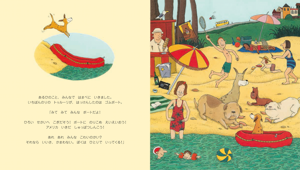 いつも いっしょの いぬたちは みんな みごとに あばれんぼう。とりわけ とびきり わんぱくは、みんなの リーダー、トゥルーリです。……やんちゃな犬のトゥルーリが、ゴムボートでアメリカをめざす、ゆかいな冒険のおはなし。