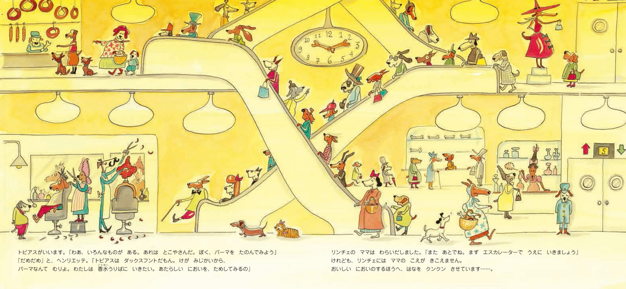 こいぬのリンチェは、ママやともだちといっしょにデパートへでかけました。「ママのそばをはなれない」とやくそくしたのに、リンチェはおいしいにおいのするほうへ…。はぐれてまいごになったリンチェをみんながさがします。