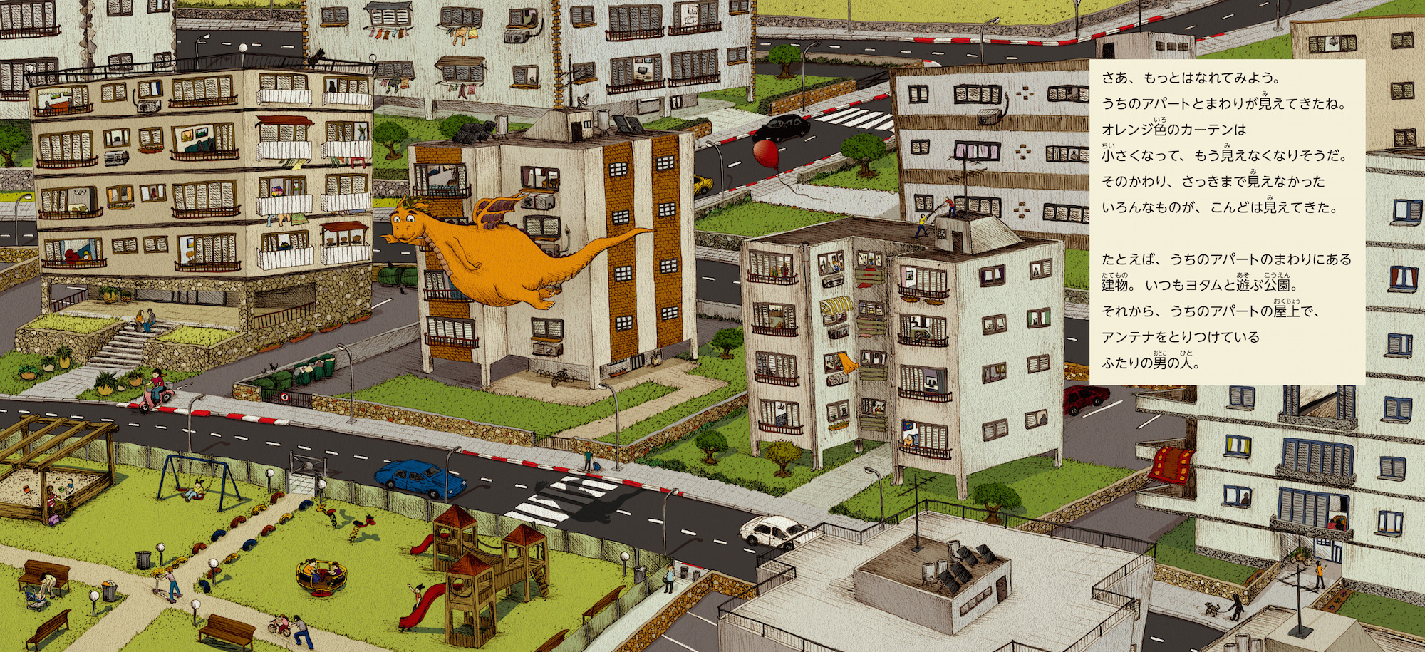 もし空をとべたら、わたしたちのうちの近くの家々や町の通りは、どう見えるだろう?