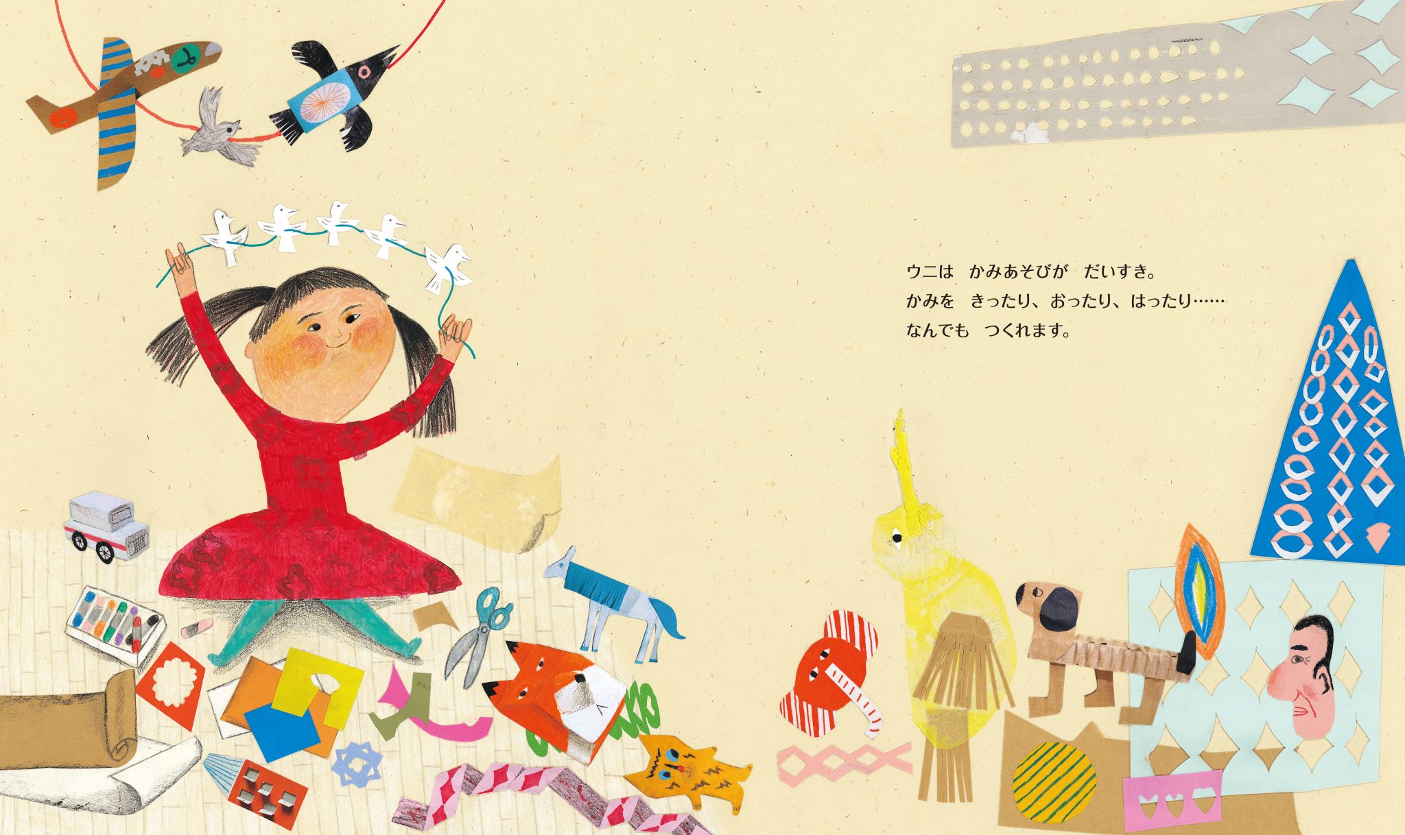 いつも仕事で忙しいパパ。今日も書類ばかり見ていたら、なんとペラペラの紙になっちゃった!紙遊びが大好きな娘のウニが、パパを助けようとはりきります。ところが、突然、窓から突風が吹き込んで、ふたりは大空へ…。