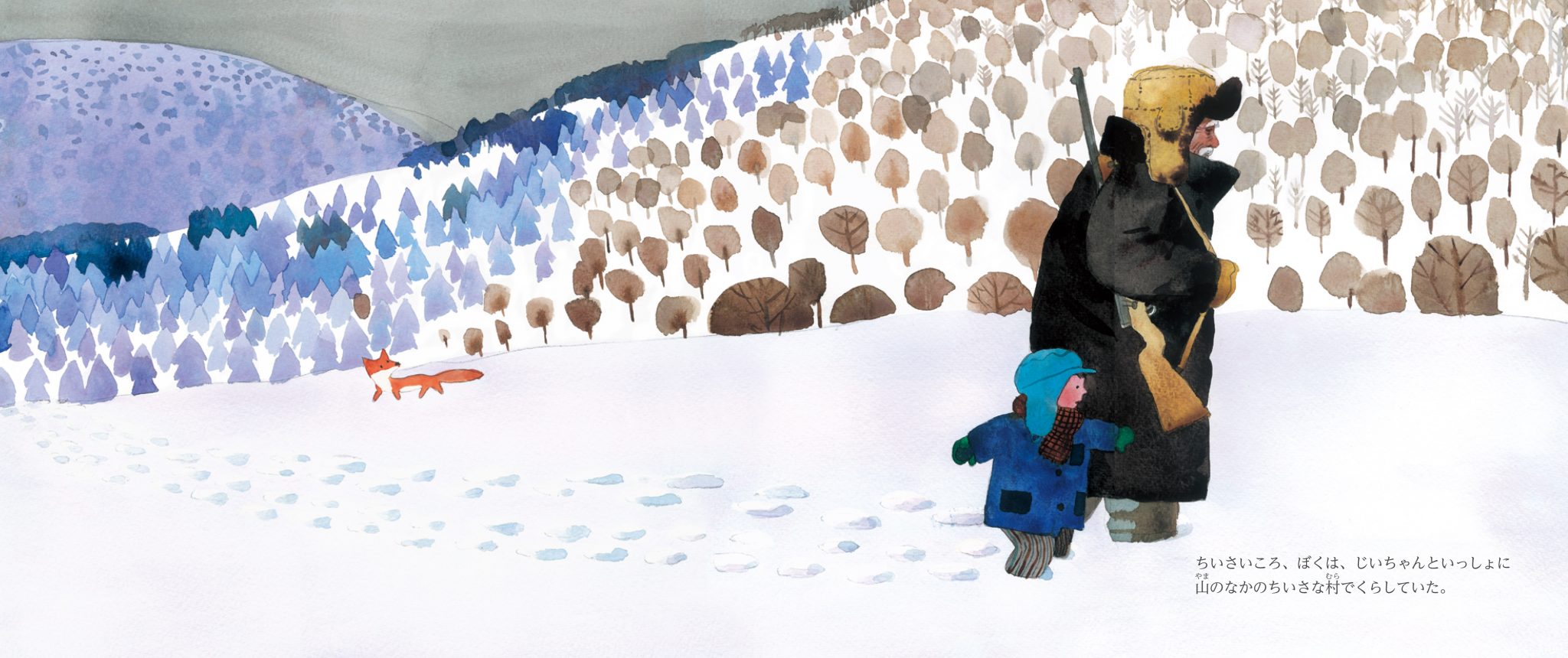 作者が幼いころに暮らした山奥の村。山林保護官として生きたじいちゃんと孫である「ぼく」の、雄大な山々とともにある生活。いたずらなキツネとの交流、じいちゃんが大切に使っていた火をつける道具・火うちばこの思い出。1950年代ごろの中国北部、内モンゴル自治区中央部に連なる大青山山脈を舞台に、詩情あふれる風景をノスタルジックに描いた1冊。