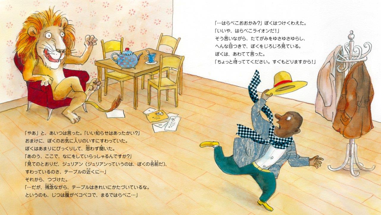 ぼくは、パリのアパルトマンに暮らす、ごく普通の会社員。ある日、郵便物を取りに行って部屋へ戻ると、ライオンがいた。ぼくのお気に入りの椅子に座って、「やあ」と言った。突然に始まった、ライオンとの同居生活。ライオンはゲストルームで寝起きし、専業主婦なみに家事をこなしてくれる…。