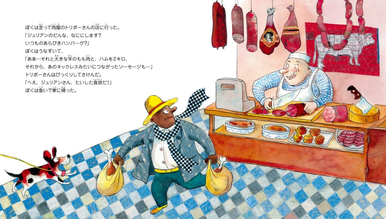 色遣いにも背景にも、フランスらしい雰囲気たっぷりの個性的な絵本。
