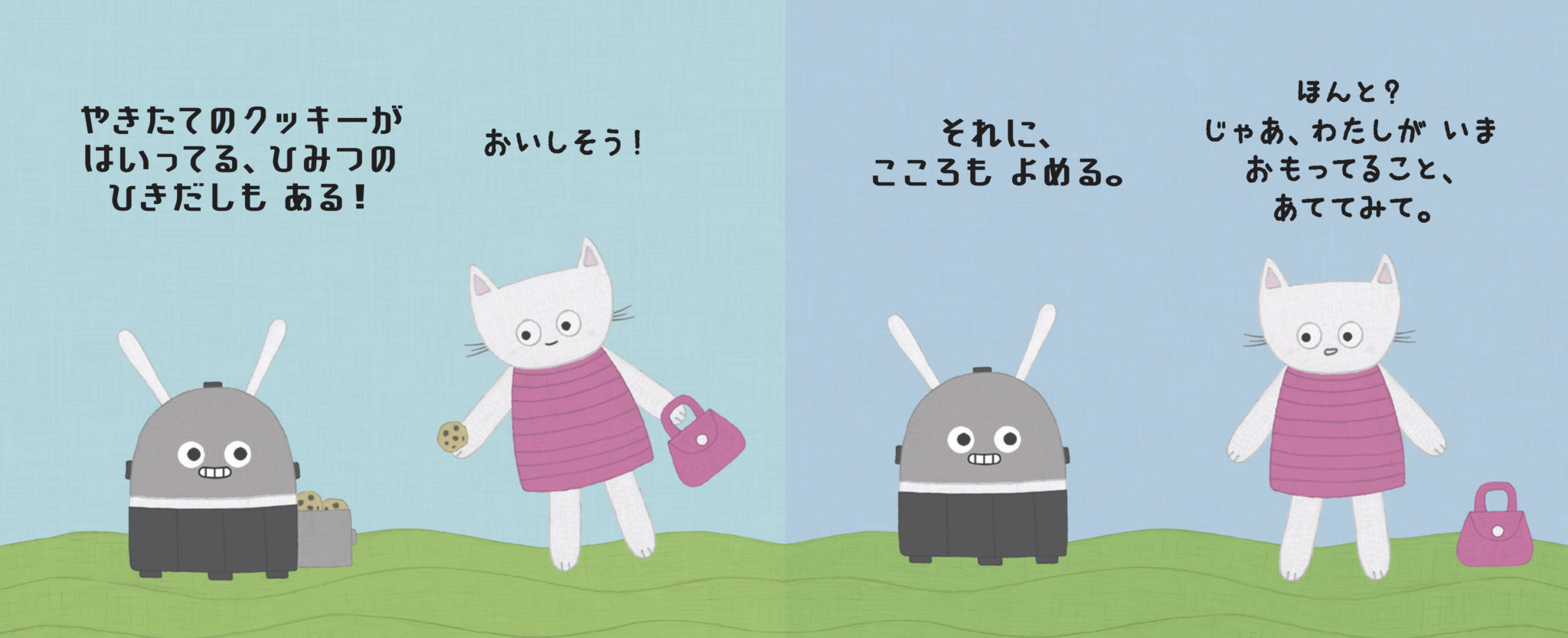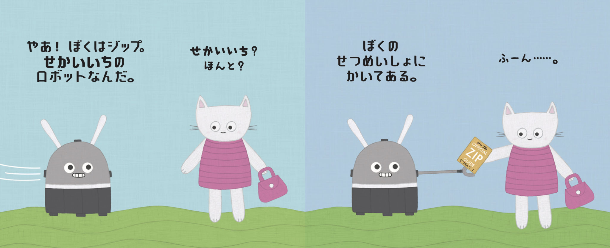 とっても正直者なロボットのジップとちょっぴりクールな猫の女の子。