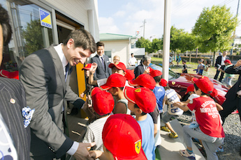 フェラーリ・ジャパンのリノ・デパオリ代表取締役社長は、子ども達に向けて、「ワールドライブラリーを通して、石巻市に新たな貢献ができ、大変嬉しく誇りに思います。教育こそが子供たちが育っていく過程で最も大事なことだと思います。子供たちの夢の実現のために、少しでもお役に立てれば嬉しいです」とメッセージを贈りました。