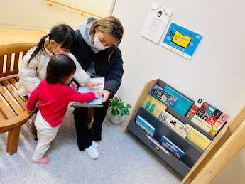 「たいとうこども園」の子どもたちだけではなく、お迎えに来た保護者の方も一緒にワールドライブラリーの絵本を楽しんでいただいている様子が伺えます。