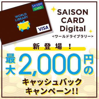 ワールドライブラリ―の会員様についても、SAISON CARD Digital<ワールドライブラリ―>ご入会後、対象期間中のご利用で、キャッシュバックされます。 ワールドライブラリ―オンラインショップでのご購入時や、ワールドライブラリ―パーソナルのお支払いカードとしても是非、ご利用ください。