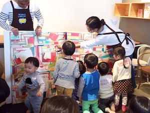 11月14日、茅ヶ崎にあるCAFE POE(カフェポー)で「ブックモンスターかじり屋ニブルス」の大型絵本を読みました。 今回はニブルスくんの大型絵本が登場! ワールドライブラリーのアンバサダーになってから、何度か子供たちが集まる場で読んでいたニブルスくん。しかけ絵本ということもあって、内容がわからない小さな子供たちも大好きな一冊です。 未就園児中心のこの会では、自分よりも大きい大型絵本の登場に子どもたちは大興奮。アトラクション感覚で普段とは違う演出ができ、読んでいる私もとても楽しめました。 参加者のママさん達からも「楽しかった!」「良い時間だった!」と皆さん笑顔のコメントをいただきました。 ちなみに今回の参加者は、私含め大人11人、子ども13人、みんなで楽しい空間を共有出来ました。