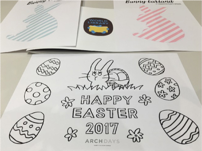 リーディングの後は、イースターにちなんだモチーフを使って、サンキャッチャーを作りました。また、ワールドライブラリーのオリジナルペーパークラフトは、男の子たちに大人気でした。