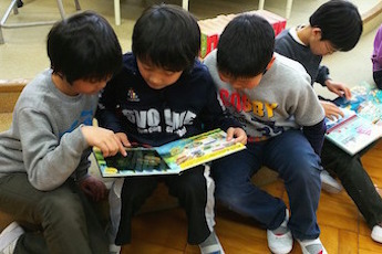 さまざまな国々の仕掛け絵本や色彩豊かな絵本を、1年生から6年生まで夢中になって読んでいます。2年生への読みきかせは大変盛り上がりました。その後、話を聞いた子どもが他の子どもに本の内容を紹介したり、借りて行ったりする姿が見られました。原書と日本語版を隣に並べたり、2冊束ねて配架したりと、子どもたちが自然に英語に触れられる環境を提供しています。