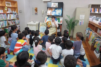 ワールドライブラリーのスタッフによる読み聞かせ会も実現。児童のみなさんと世界の絵本のかかわり方をうかがいました。