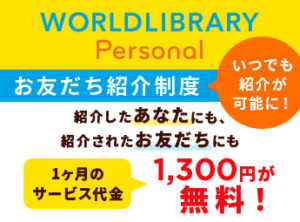 ワールドライブラリーパーソナルは、昨年、サービス開始5周年を迎えました。サービスの成長とともに会員数も堅調に伸びており、次の10周年に向けて更に成長するための施策を検討している中で、懸案だった会員様からお友だちを紹介をしていただいた場合に還元できる仕組みを本格的に検討し、このたび「お友だち紹介制度」としてスタートすることとなりました。