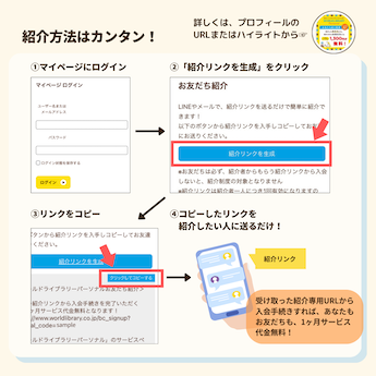 ワールドライブラリーパーソナルの紹介制度は、会員さまもお友だちも、1ヶ月サービス代金が無料とお得になります。ぜひ、多くの方にご利用いただきたい制度です。