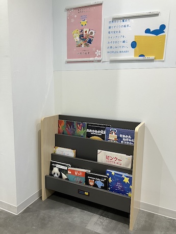 ワールドライブラリーでは、このように、キッズルームや待合スペースなどで、世界の絵本が、お子様とご家族の会話のきっかけとなり、笑顔あふれる空間づくりの一つとなるよう、今後も、絵本のレンタルサービスを通じて、お手伝いをしたいと思っています。