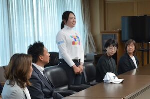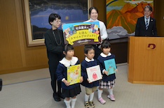 当日、県庁で行われた寄贈式では、竹田選手本人から代表で訪れた子どもたちへ絵本が手渡されました。竹田選手は、「これからも活動を続けて、たくさんの子どもたちに絵本を届けたい」と話し、来シーズンの更なる活躍を誓いました。