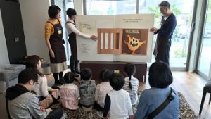 4月21日(日)、積水ハウス 久喜展示場にて、ご来場のご家族向けに、『ブックモンスター かじり屋ニブルス』の巨大絵本の読み聞かせとワークショップを実施しました。