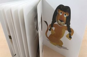 ライオンさんの立派なたてがみを、友だちのおサルさんはどんなヘアアレンジにしてくれるのでしょうか。ページをめくるたびに、お洒落な(?)ライオンさんに変身していきます。