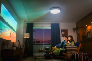 シーリングライトとプロジェクター、スピーカーの機能を搭載した、「場所を取らない、すべての間取りにフィット」する画期的な3 in 1のスマートライト「popIn Aladdin」
