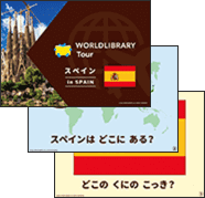 ポスターとスライドがセットになったミニクイズの内容と、大人も一緒に楽しめるような国情報が掲載されています。