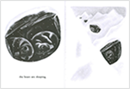 雪山の中で冬眠している動物たちが、深い眠りから目覚めました。何かの臭いを感じ、鼻をくんくんさせながら動物たちが一斉に走り出します。