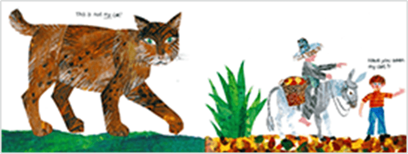 いなくなった猫を捜して、世界中を回る少年のお話。ページを開くたびにエリック・カールの描く大迫力のネコ科の動物が現れます。邦題:『ぼくのねこ みなかった?』(偕成社)